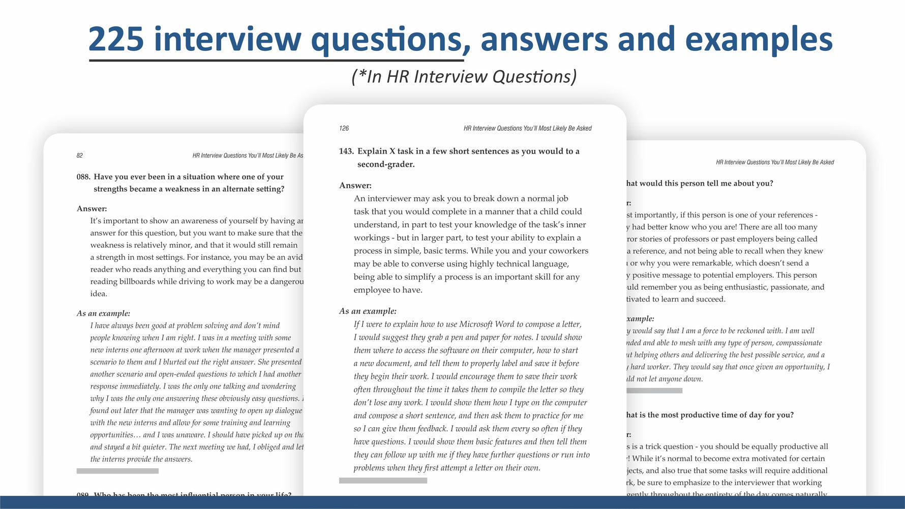 - 225 HR Interview Questions, Answers and proven strategies for getting hired