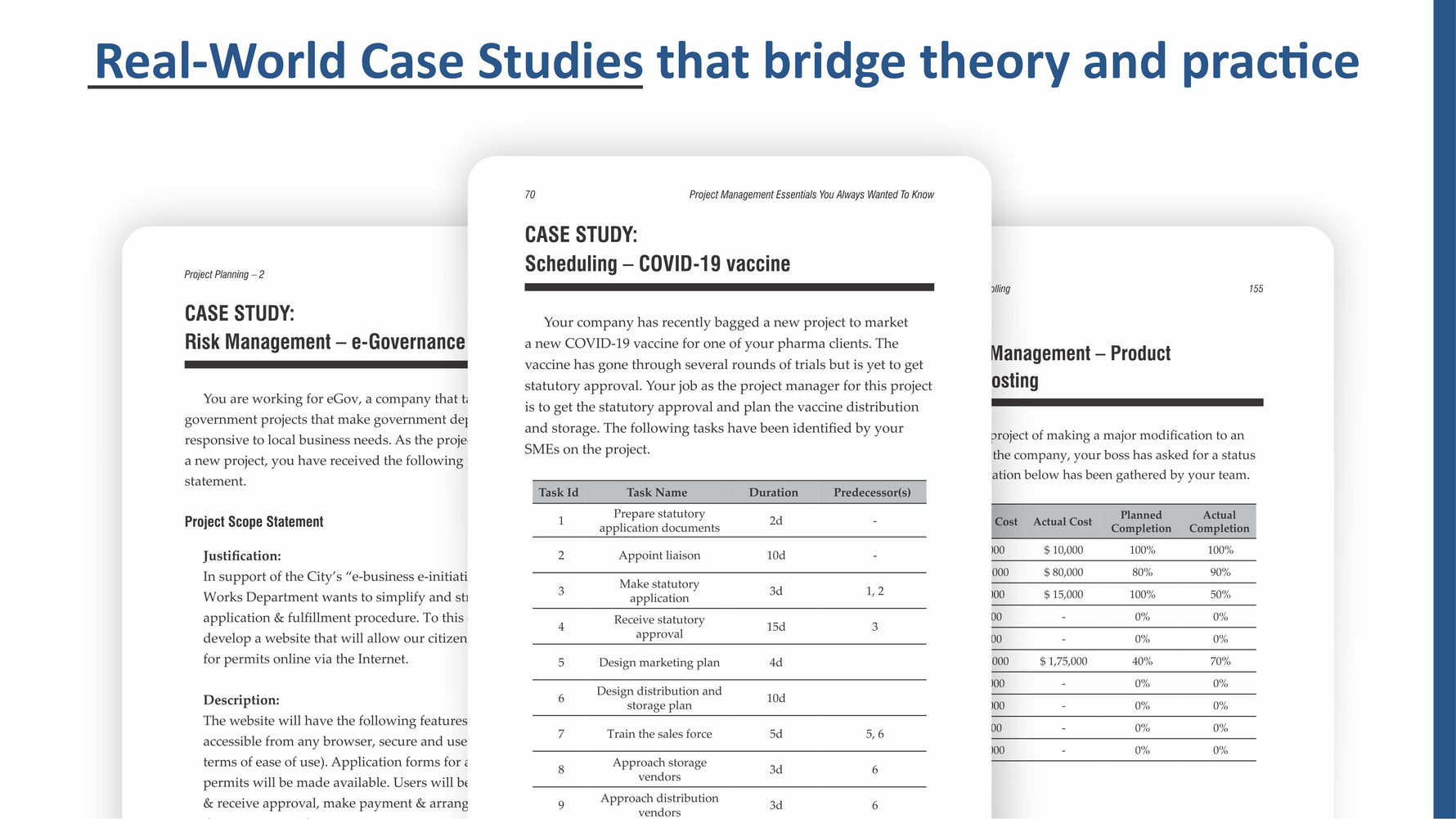 The book explains the concepts in a simple and very understandable manner. All concepts are explained very well and provided with very simple and relatable examples. The book is very reader friendly and the examples provided are real life examples. This book will be very useful to students and project professionals alike.