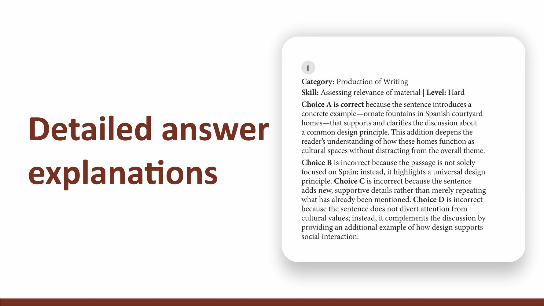 ✔️ Straightforward structure with practice grouped by passage type—so you can get familiar with the kinds of texts you’ll see on test day