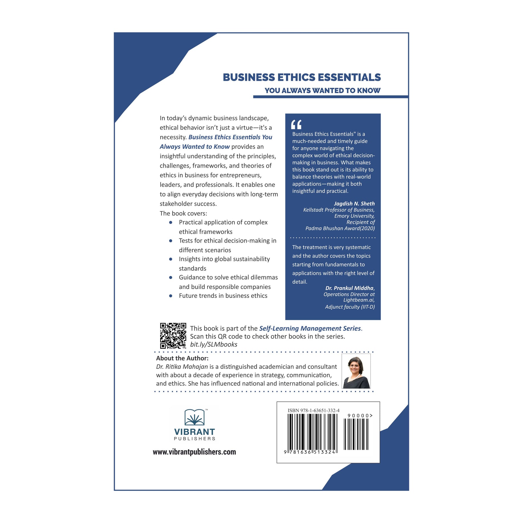 This book offers well-rounded strategies and governance-related best practices for entrepreneurs, leaders, and professionals to align everyday decisions with long-term success and stakeholder well-being. It also enables individuals and businesses to reflect on the latest developments and research in business ethics.