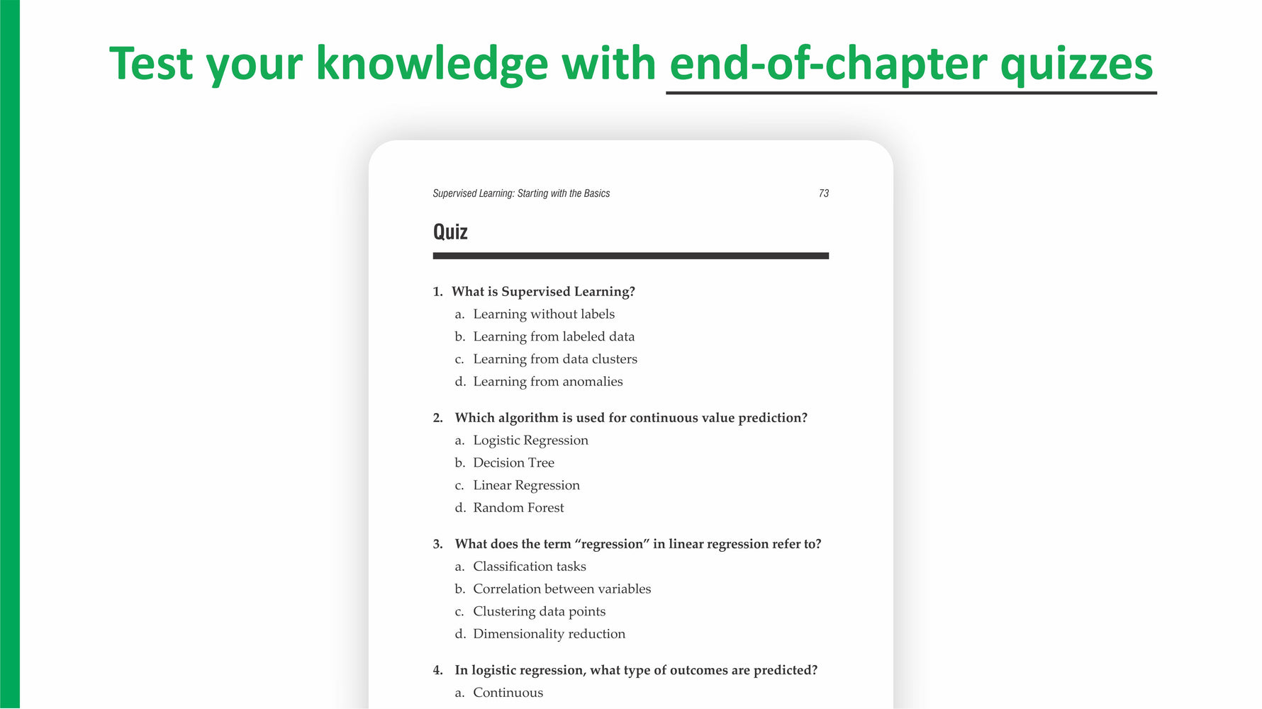 Dhairya Parikh’s industry experience and academic background are evident in the book’s structure and clarity. The content is well-organized, starting from the basics and progressing to more advanced models, always emphasizing practical application. The inclusion of glossaries and quizzes at the end of each chapter supports self-paced learning.