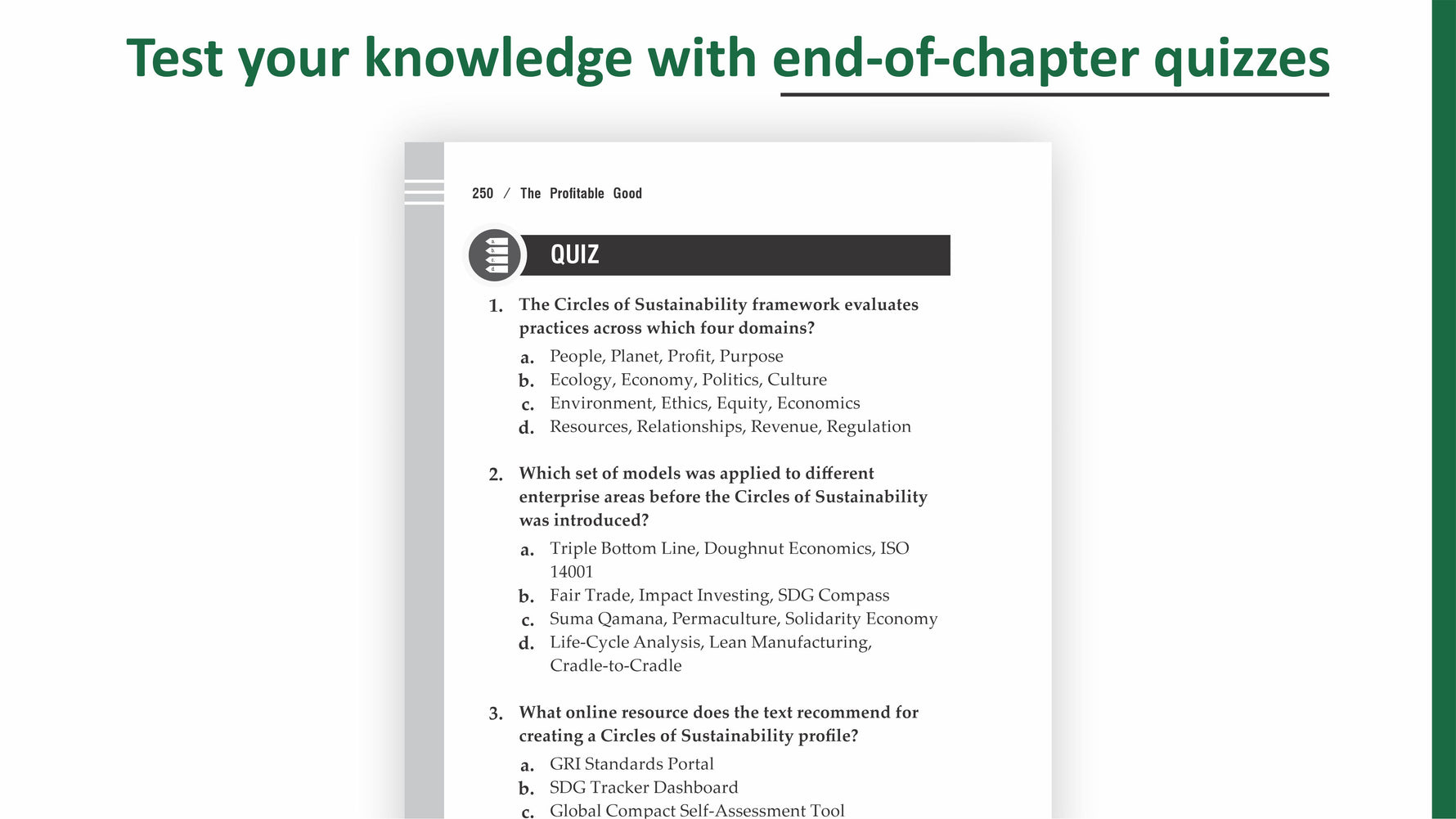 Through interactive exercises, relatable examples like the lemonade stand venture, and real-world tools like SWOT analyses and the entrepreneurship self-assessment, you will learn how to build impact into your operations, sales strategies, partnerships, and financial models. Using a hands-on, applied learning approach that incorporates downloadable templates, quiz questions, and practical tips throughout, The Profitable Good transforms sustainability theory into actionable business practice.