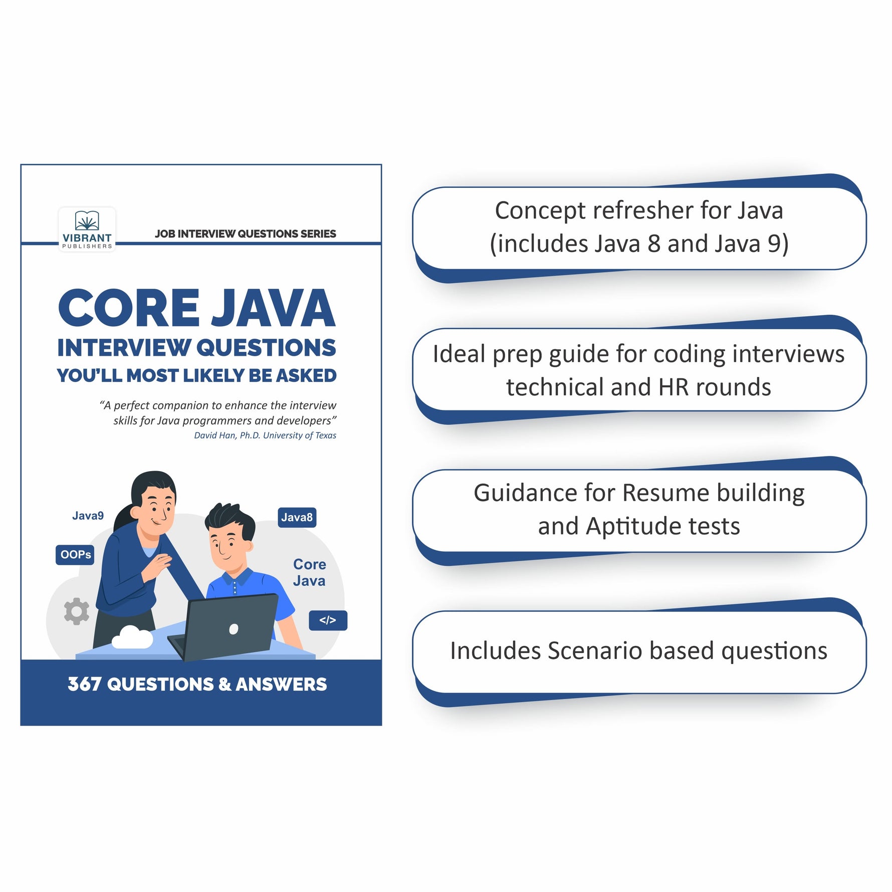 Core Java Interview Questions not only covers the technical nuances pertaining to Java concepts and code thoroughly but it also succinctly offers the knowledge and presentation that job seekers must deliver while aiming to land their dream jobs in Java.
