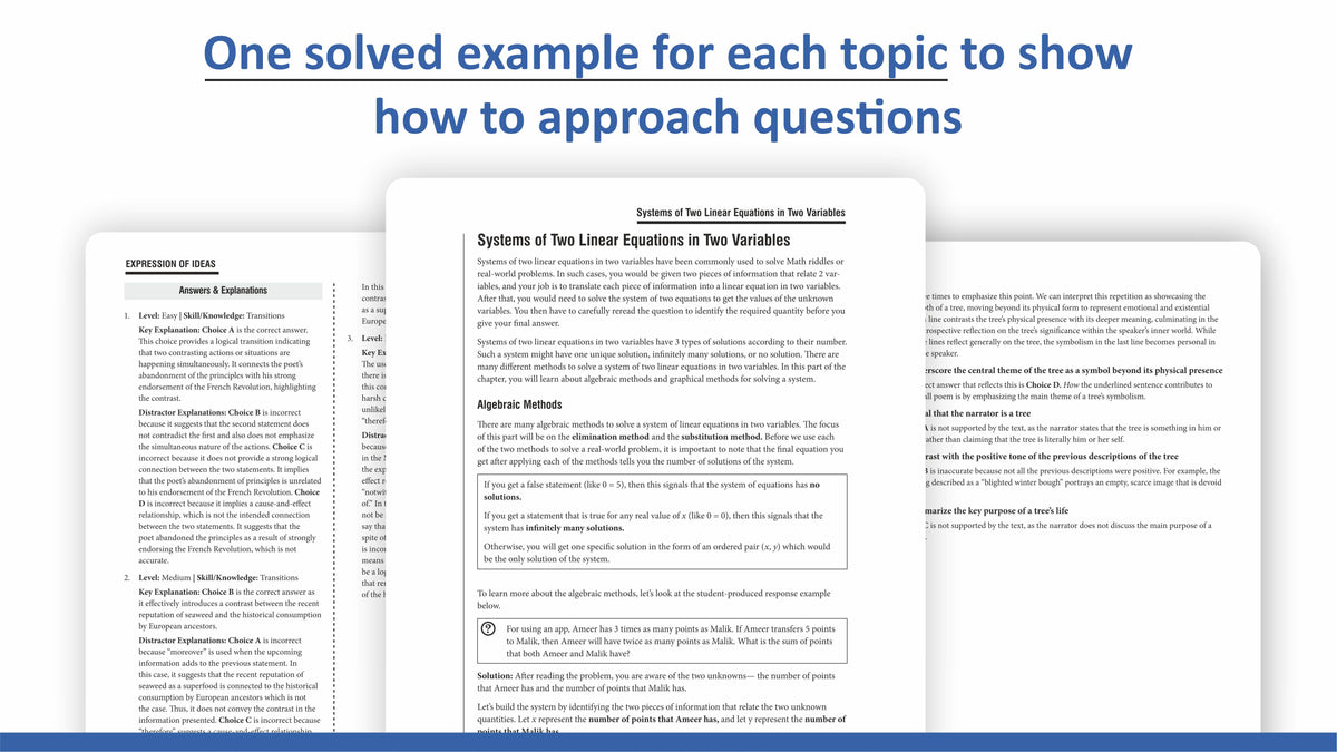 - Step-by-step breakdown of Reading, Writing, and Math concepts by SAT experts to give you a thorough understanding of all topics