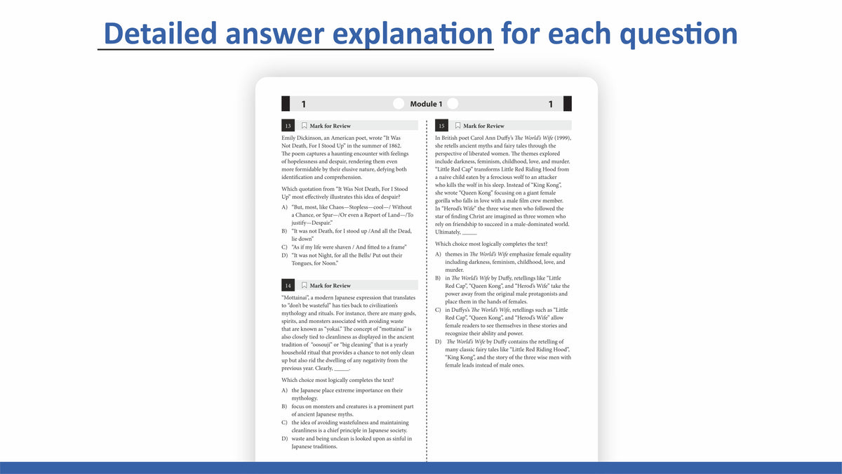 The "Digital SAT Supreme Guide" is a stellar piece of work put together to shine the spotlight on the topic-wise nuances vital for the test takers. The easy-to-understand, structured, and logical explanations underscore the relevance and efficacy of its content, especially for tutors and zealous students. The practice tests mimicking the layout and problem types in College Board-administered SAT act as a cherry on the cake to groom students to ace the Reading/Writing and Math sections.