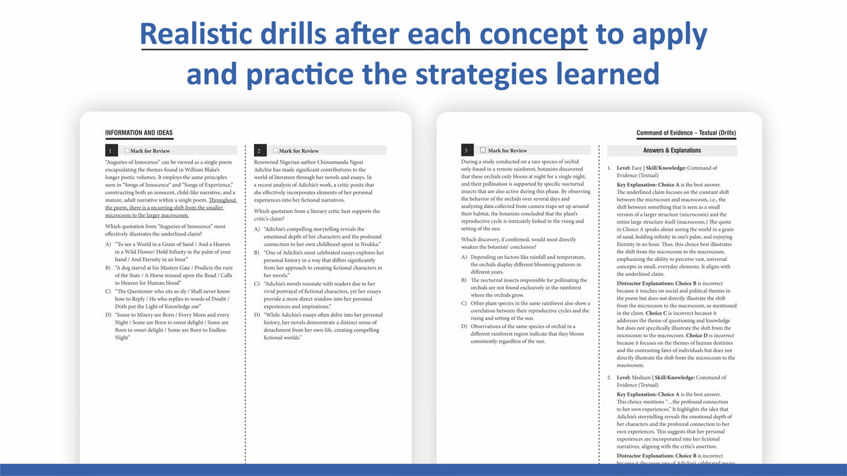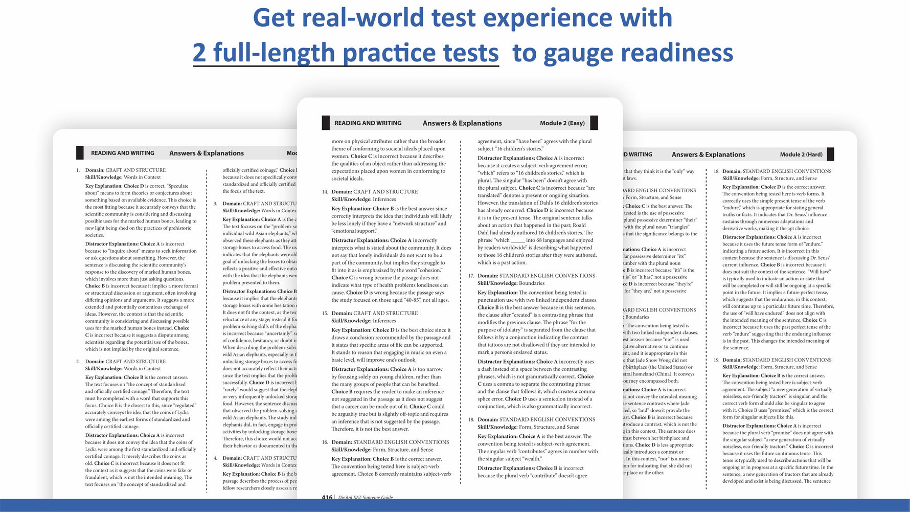 The structure and content of this book are praiseworthy. The number of practice questions (450+) and the variety of the topics is excellent. I do like that the online practice test will be adaptive just like the Digital SAT.