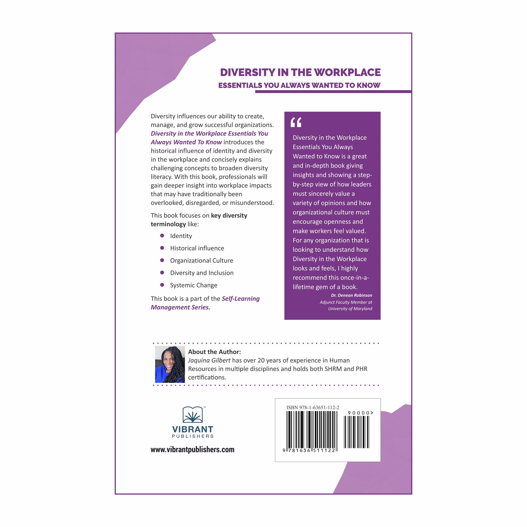 Jaquina Gilbert has over 20 years of Human Resources experience in multiple disciplines and holds both SHRM and PHR certifications. She has authored several booksand has written HR-related content for business owners, authors, and professionals in various industries. Jaquina received a BBA in Human Resources Management and Organizational Behavior from the University of North Texas in Denton, and an MS in Human Resource Training and Development from Amberton University.