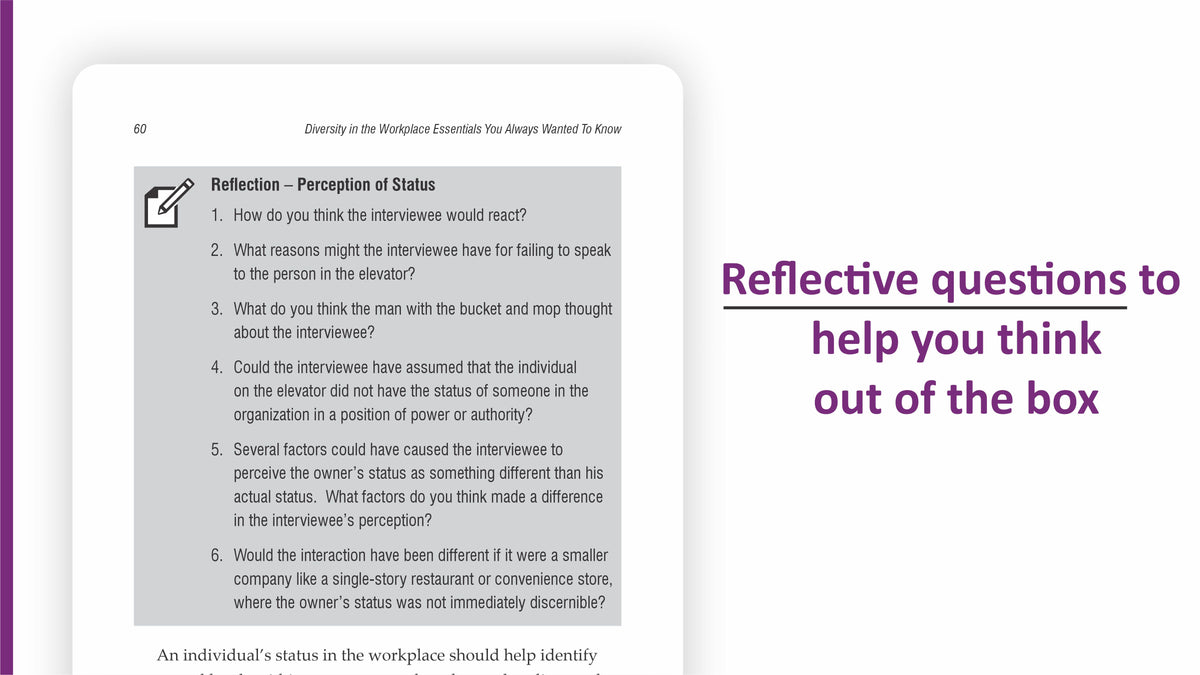 Diversity in the Workplace Essentials You Always Wanted to Know is a great and in-depth book showing a step-by-step view how leaders must sincerely value a variety of opinions, and how organizational culture must encourage openness and make workers feel valued. For any organization that is looking to understand how Diversity in the Workplace looks and feels, I highly recommend this once in a lifetime book gem.