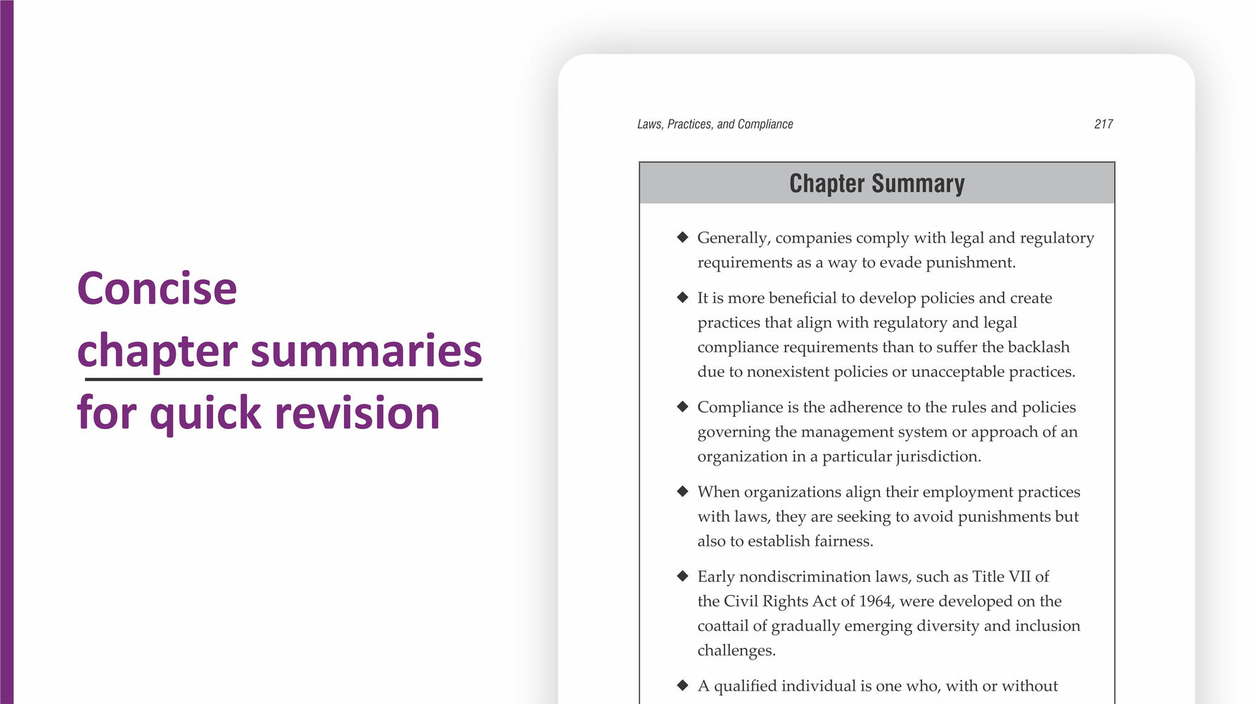 The varied topics included in the book are very relevant in the context of today's working environment. The chapters are well organized and the quizzes and chapter summary after each chapter come very handy for the students.