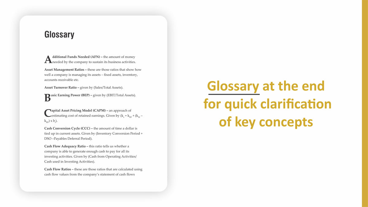 The book presents financial concepts in a simple and structured manner. A bit more depth in some areas would be helpful, but overall, it's a great resource for professionals.