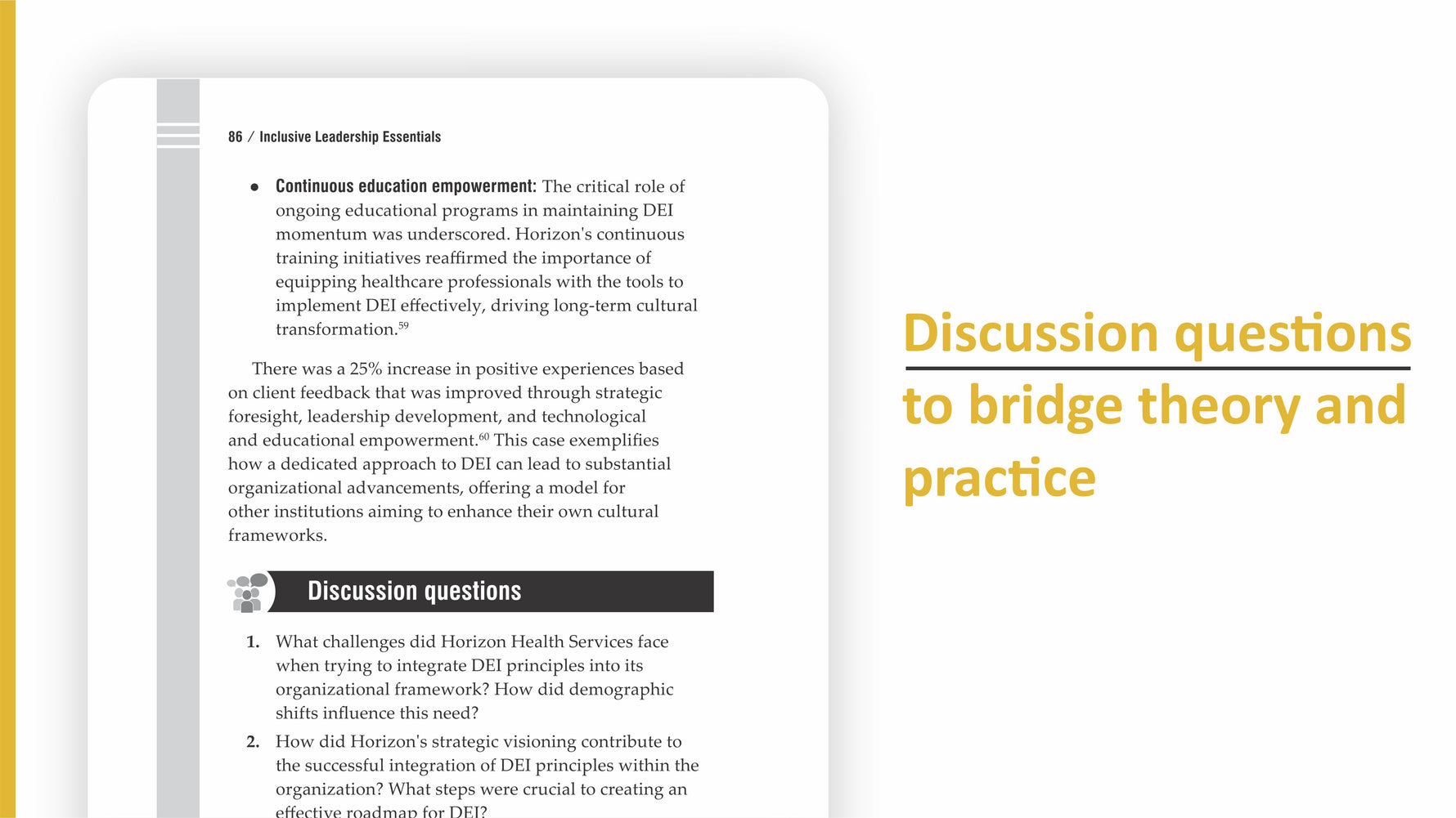- Integrate DEI principles into core leadership strategies