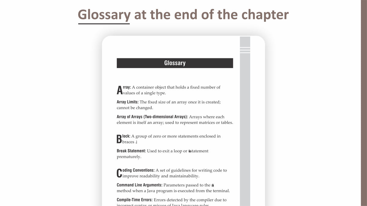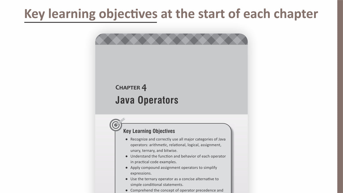 This book introduces readers to the Java programming language with an emphasis on clarity, pedagogy, and real-world relevance. The content is structured to reflect the actual learning curve of new programmers, starting from how to set up the Java Development Kit (JDK) all the way to mastering core programming constructs such as variables, data types, operators, control flow, methods, strings, arrays, and more.