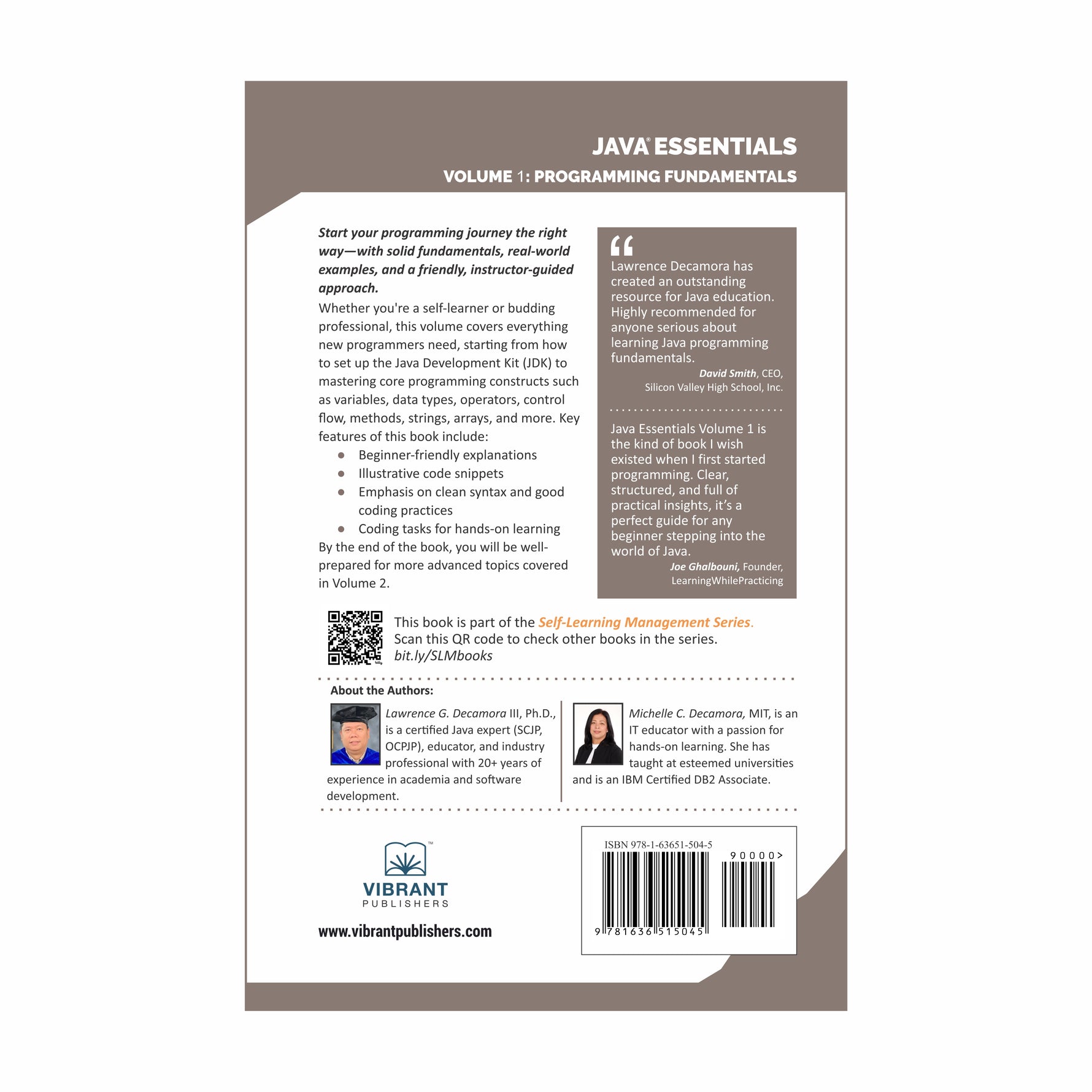 By the end of the book, learners will be confident in writing functional Java programs and well-prepared for more advanced topics like object-oriented programming, which will be covered in Volume 2.
