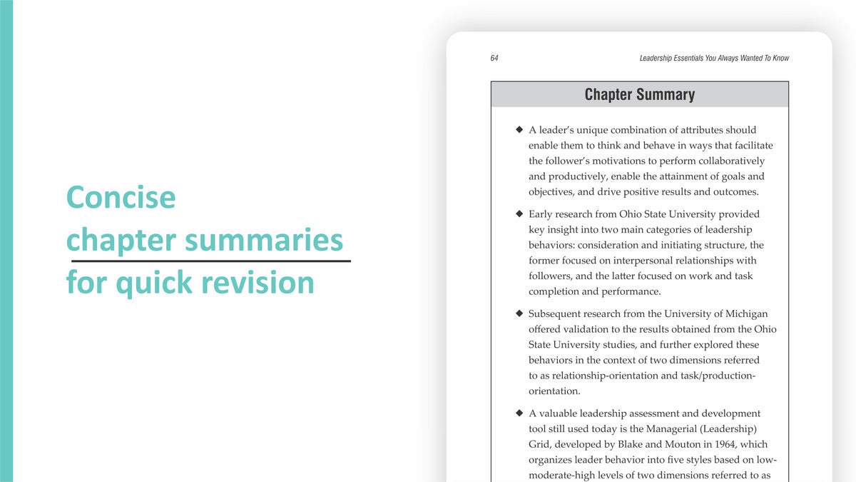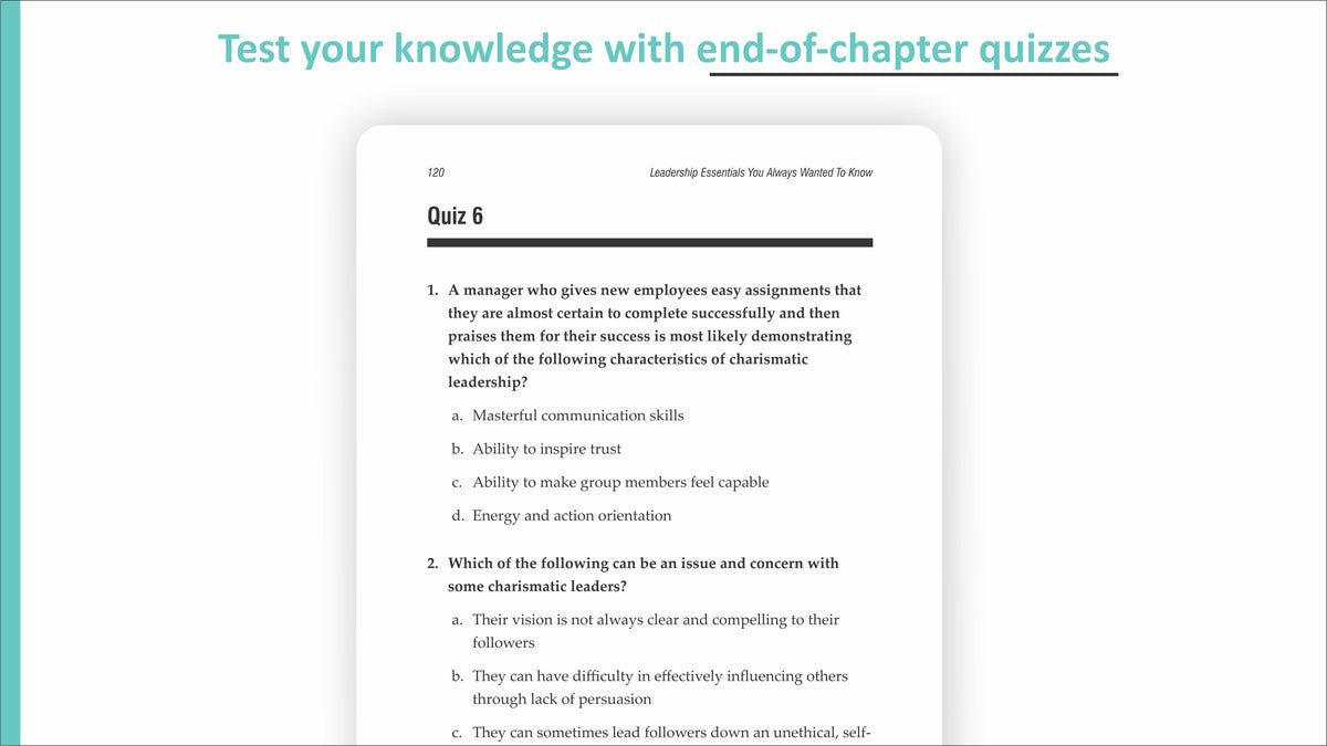 Driven by the latest research on leadership, this straight-forward guide breaks down not only the traits of highly effective leaders, but also how to use those traits in a variety of situations. You do not need to be in a leadership position to benefit from the lessons detailed in this book. Aside from defining the concepts of leadership and motivation, the book explores the best practices of effective leadership and the core competencies of influential leaders. It also offers insight into real-world challenges that have been faced--and overcome--by thriving organizations. With chapter summaries, quizzes, and online resources to reinforce concepts, Leadership Essentials You Always Wanted to Know is a power-packed resource that will guide you towards becoming a better leader.
