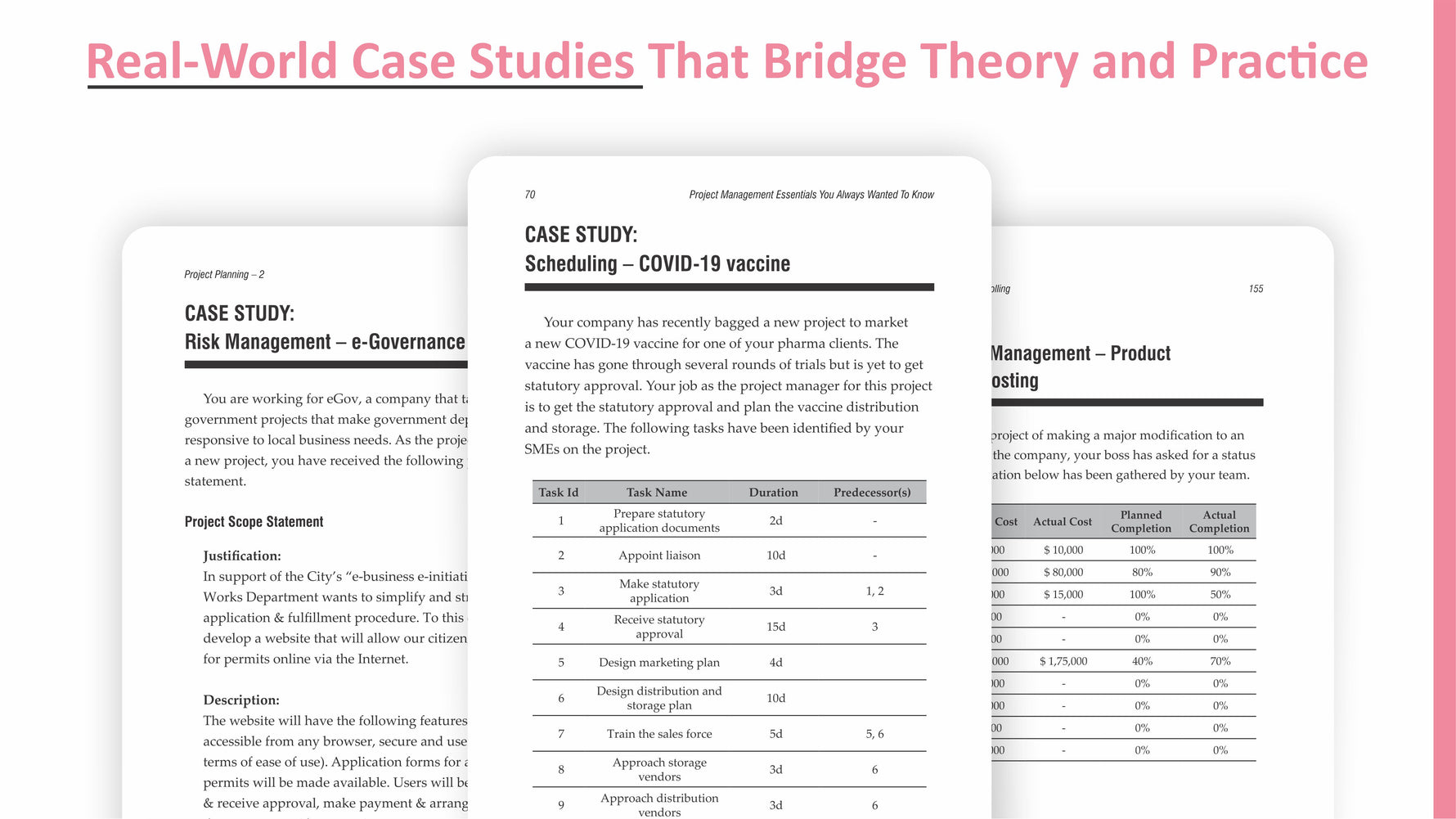 An excellent resource for anyone new to project management. The book is well-written and covers all the important topics in a clear and concise way. The examples provided are very relatable and easy to understand.