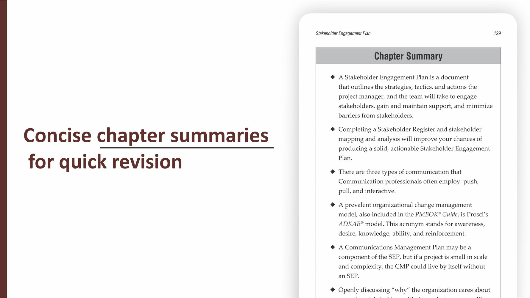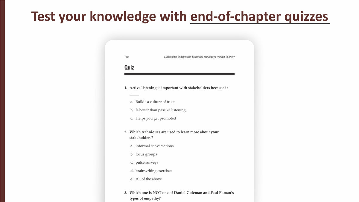 The book does not just state techniques to engage with stakeholders but makes learning fun and engaging with the help of case studies, activities, and tips that will tickle your brain and make your wear the hat of a Project Manager. You will gain a deeper understanding of project management and stakeholder engagement tools like Project Charters, Stakeholder Register, Power/Interest Matrix, etc.