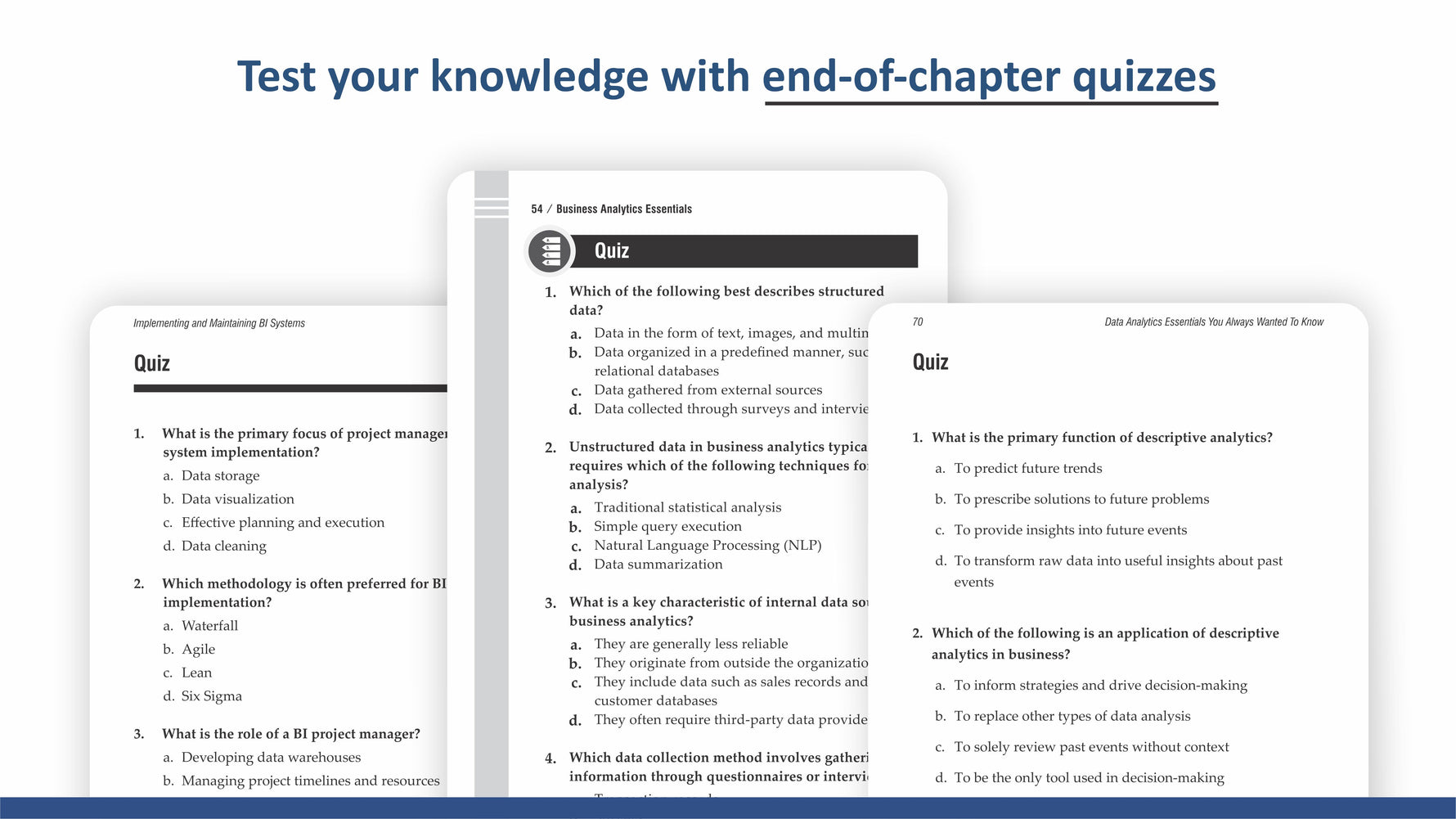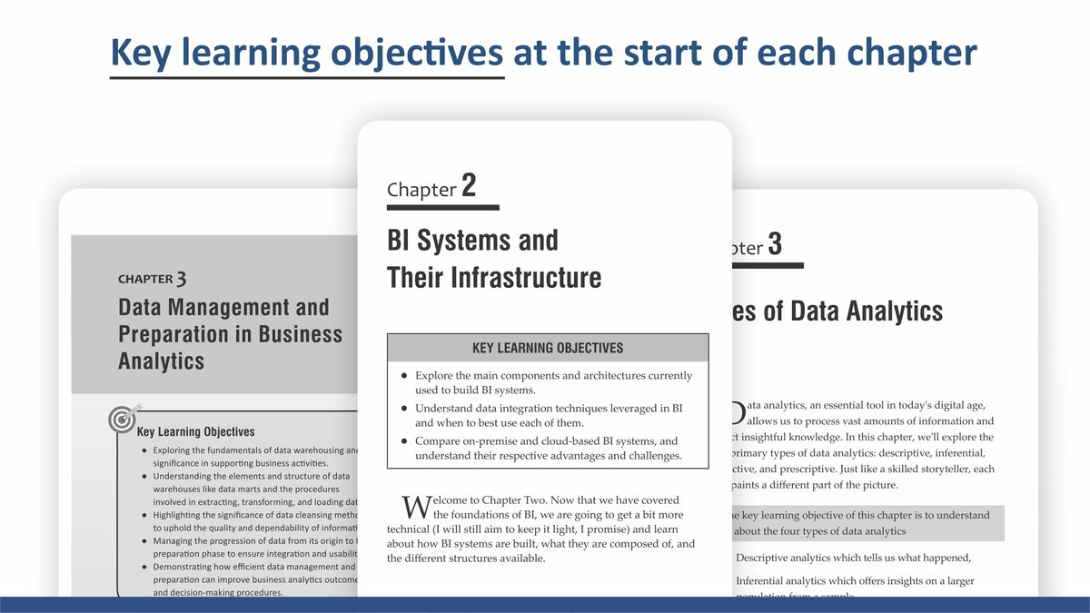 Each book features quiz questions and chapter summaries to reinforce learning. From basic BI concepts to advanced big data analytics, this collection provides the foundation needed to navigate today's data-driven business environment successfully.